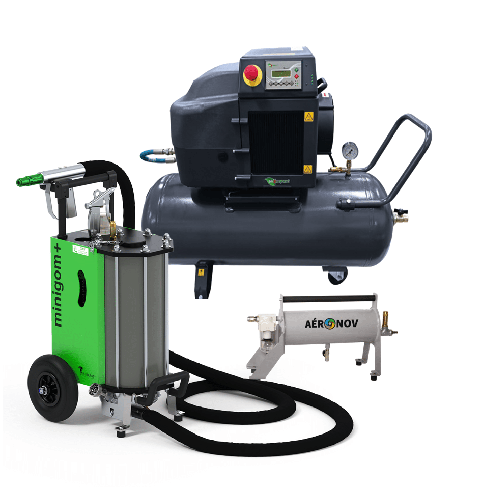 Optez pour une solution complète et immédiatement opérationnelle avec le Pack Aérogommeuse MINIGOM+ + Compresseur SMART 270.